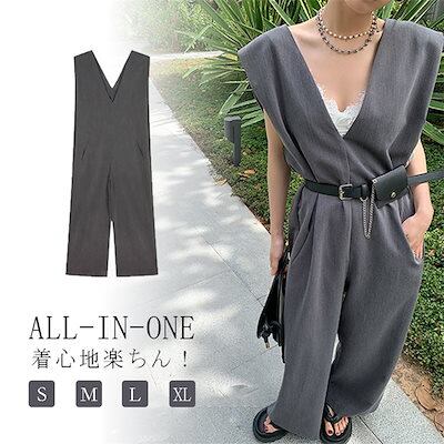 J&Xオールインワン オーバーオール 薄手 ワイドパンツ 体型カバー 春夏秋 おしゃれ サロペット