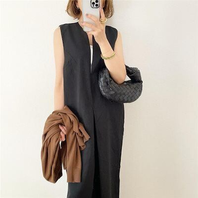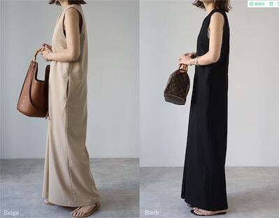 美ゆるシルエット Vネック 袖なし オールインワン ワイドパンツ 体型カバー オーバーオール