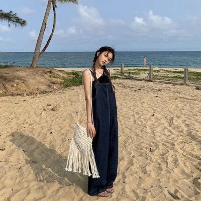 デニムパンツ デニムオーバーオール オーバーサイズ レディース ビッグ サロペット ワイド ロングパンツ 大きいサイズ