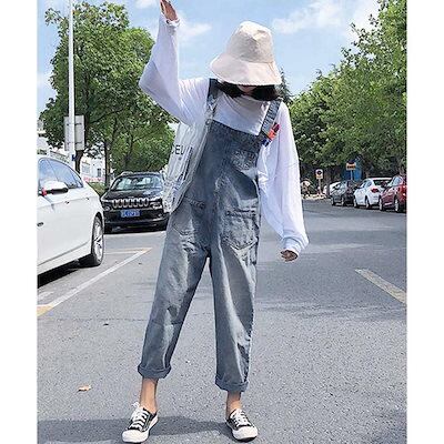 デニムパンツ サロペット デニムパンツ レディース ジーンズ ダメージ オーバーオール オールインワン コンビ