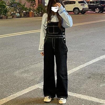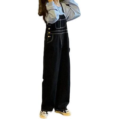 サロペット 新しいファッション ジーンズ 学生 オーバーオール レディー ゆるい ハイウエストストレートワイドレッグ
