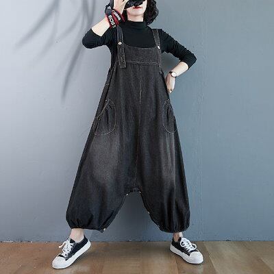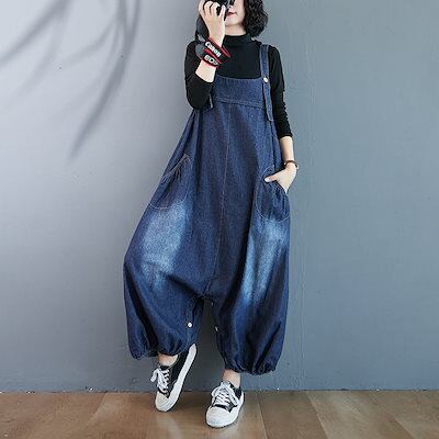 春 夏 人気なオールインワン 無地 ゆったり ワイドパンツ シンプル おしゃれ ハイウエスト オーバーオール レディース 体型カバー サロペット