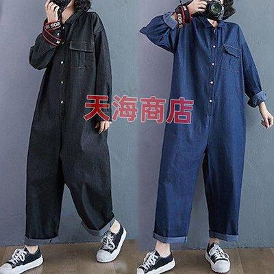 つなぎ レディース デニム ジャンプスーツ サロペット オールインワン 長袖 春秋 ゆったり オーバーオール 無地 着痩せ オフィス お洒落おすすめ商品