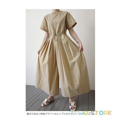 オールインワン レディース 半袖 つなぎ コンビネゾン コットン サロペット 快適 ゆったり 体型カバー ワイドパンツ 半袖つなぎ 無地 オーバーオール