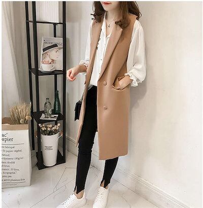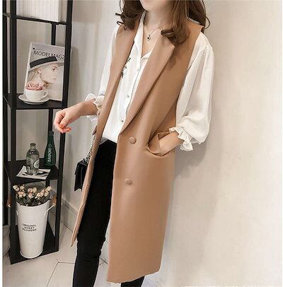 ジレ ベスト レディース ロング 前開き フォーマル 春 秋 ロングジレ ロングベスト ノースリーブ きれいめ トレンチベスト ロング丈 スーツ ライトアウター 大きいサイズ おしゃれ 着回し カジュ