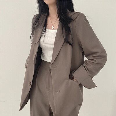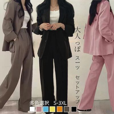【2枚購入で 2oo円OFF! 】春 スーツ セットアップ レディース カジュアルゆったり 通勤 ジャケット/ワイドパンツ 二点セット 春 アウター フォーマル ビジネススーツ ママ スーツ 卒園式