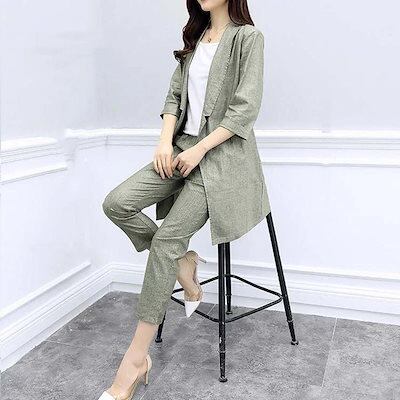セットアップ スーツ レディース 夏 パンツ 2点セット 薄手 上下セット フォーマル 9分丈 パン