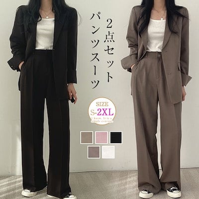 スーツ セットアップ レディース スーツ パンツスーツ オフィス フォーマル テーラードジャケット&ワイドパンツ 2点セット セレモニー ビジネススーツ 洗える ウエストゴム 入学式 卒業式 入園式