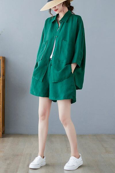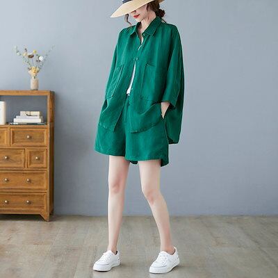「ファットガール」 コットンリネン/スーツ/レディース/サマー/ツーリング/シャツ/ツーピーススーツ ジャージ スウェット 卒業式 ママ フォーマル スーツセットアップ メガ割