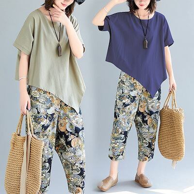 「ファットガール」 民族風 上下セット 春夏 レディース 大人 30代 40代 体型カバー 大きいサイズ セットアップ 中華風 ジャージ 卒業式 ママ フォーマル スーツセットアップ 20 メガ割