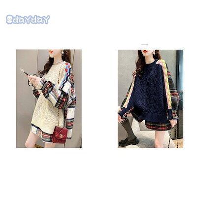 セーター ブラウス トップス 長袖コート コート レディース ロング丈 長袖 ショート Uネック チェック ゆったり 着痩せ シンプル きれいめ 新品 新作 秋