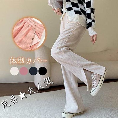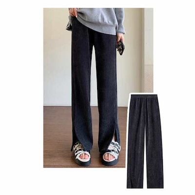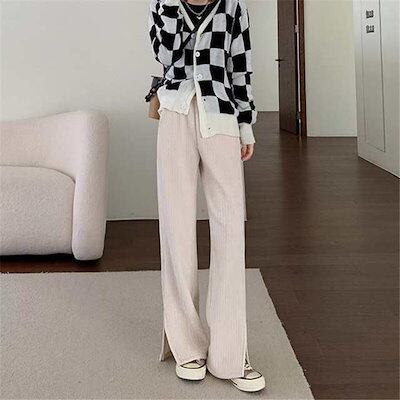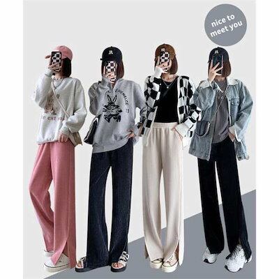 コーデュロイ ワイドパンツ レディース リブ ロング丈 ウエストゴム ガウチョパンツ 体型カバー 冬