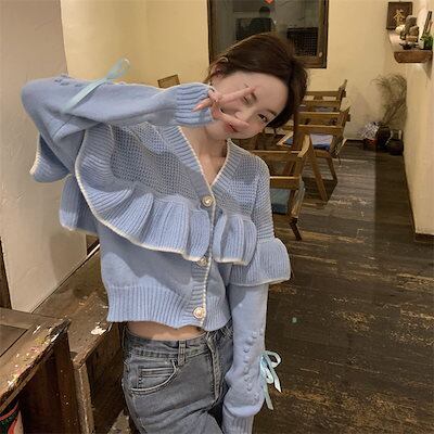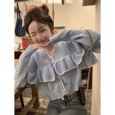 レディース ニットトップス おしゃれ 蓮の葉フリル 可愛い セーター 秋冬-356