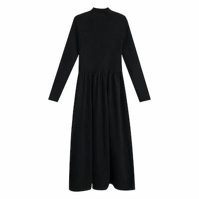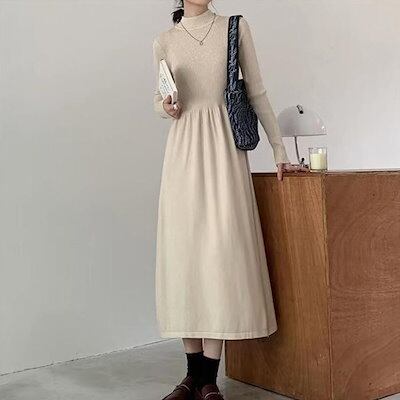 ロングワンピースニットワンピースワンピーススーツレディースクルーネックリブニット通勤オフィス秋冬着心地ベーシックワンピースゆったり切り替え通勤ワンピ長袖エレガント体型カバーゆったり着やせ2030405