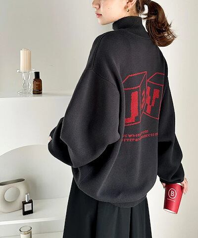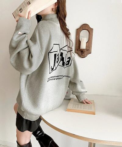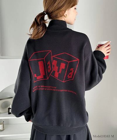 Classical Elfjavaジャバ 別注 トップス セーター レディース ヴィンテージ風 グラフィック ハーフジップ ニット 男女兼用 ユニセックス メンズ スウェット ビッグシルエット 体型カバー 大きいサイズ