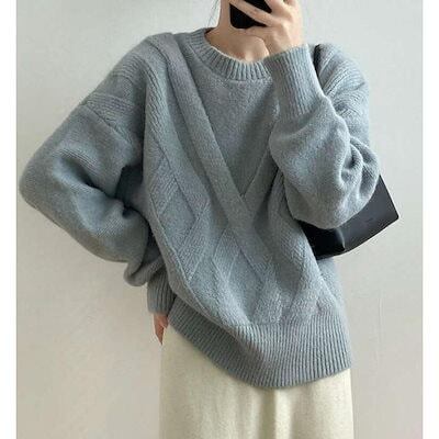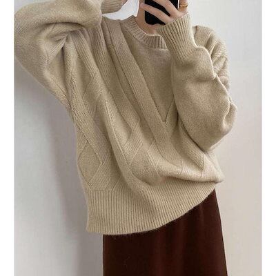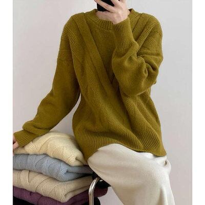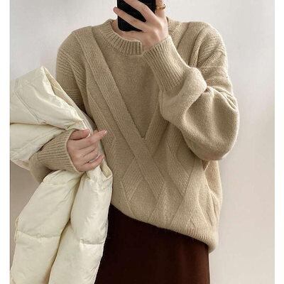 ニットセーターレディースニットセーター秋冬クルーネックおしゃれ冬リブニット長袖プルオーバー大人暖かい防寒ゆったり無地きれいめ通勤