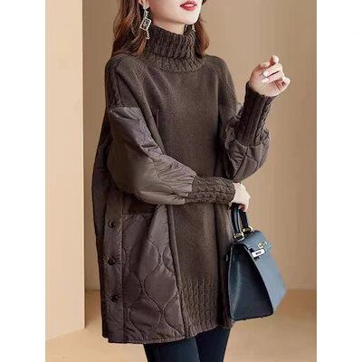 Tシャツカットソーフェイクツーピースハイネックセーターレディース厚ゆったりおしゃれトップスニット
