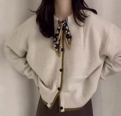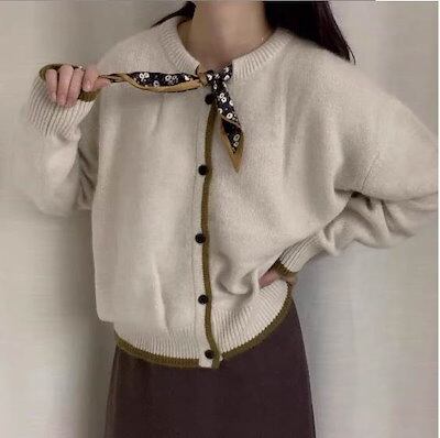 レディース トップス ニット カーディガン 長袖 ボウタイ リボン ボタン レトロ クラシカル 学生風