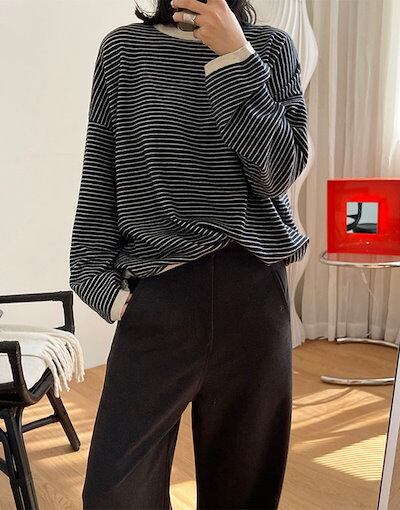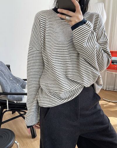 セーター ニット ボーダー レディース ウール 長袖 ニットセーター 秋冬 春 秋 冬 クルーネック トップス プルオーバー オーバーサイズ ビッグシルエット 丸首 大きいサイズ 着痩せ 韓国ファッシ
