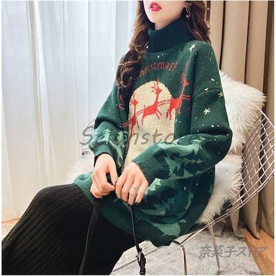 快適な材質クリスマス衣装 クリスマスセーター 長袖 レディース ハイネック パーカー 秋 冬 ニット 暖かい 出かけ 柔らかい 普段着 おしゃれ