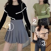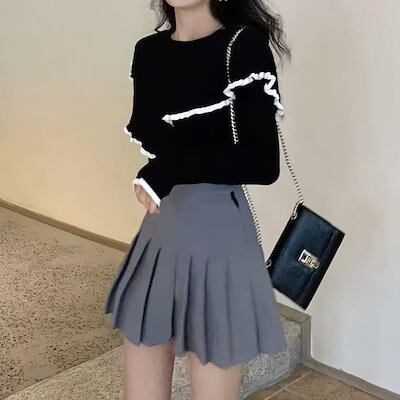 中学生 高校生 レディース ファッション 韓国 リブ ニット フリルデザイン 秋春冬 長袖 トップス