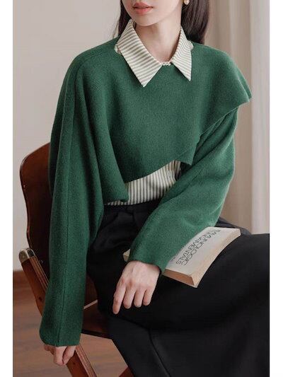 トップス レディース ニットセーター クロップド丈 ショート丈 ボートネック プルオーバー