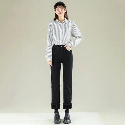 かっこいい!スラックスパンツ 新作 裹起毛 厚手 ハイウエスト ゆったり ストレート 九分丈パンツ