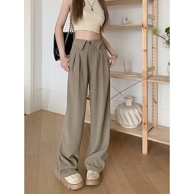 韓国ファッションデザイン感ハイウエストパンツ レディーススーツスラックス カジュアルストレートパンツV