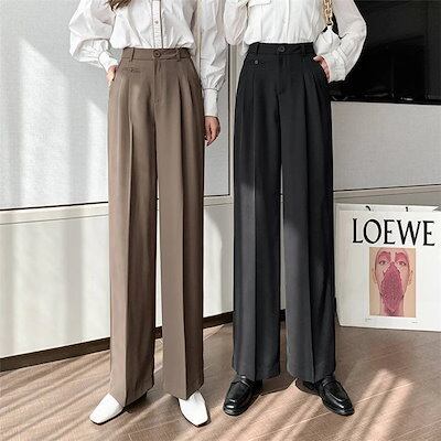 韓国ファッションスラックスパンツ レディース 長ズボン 通勤 黒スラックス ストレートズボン ボトム