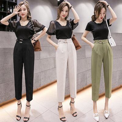 【3日で出荷】スラックスパンツ レディース 九分丈 通勤 黒スラックス ストレートズボン ボトムス 大きいサイズ ビジネス おしゃれ オフィス フォーマル OL 着痩せ