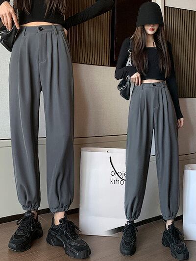3色 大きいサイズ S-4XL ロング丈 パンツ ズボン レディース 百掛け 春秋 ファッション ハイウエスト ウエストゴム 裾ゴム カジュアル スラックス 気質 無地 快適