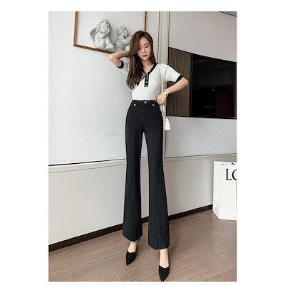 スラックスパンツ レディース 九分丈 通勤 黒スラックス ラッパズボン スリット ボトムス 大きいサ