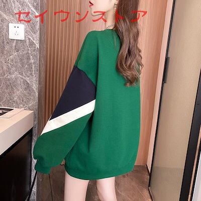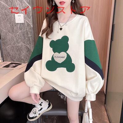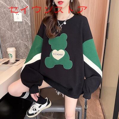 プルオーバー 裏起毛 ゆるトップス 保温防寒 長袖 クマ 配色 刺繍 可愛い ゆったり レディース トップス
