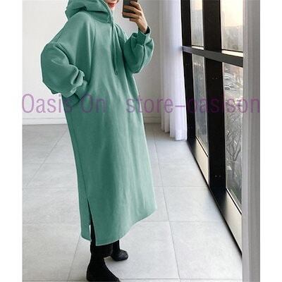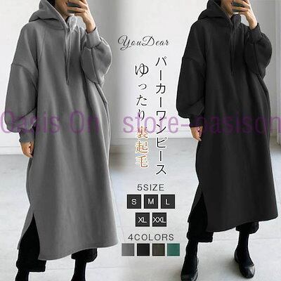 入荷 パーカーワンピース ワンピース レディース パーカー 長袖 ミモレ丈 秋 冬 体型カバー スエット 無地 ルームウェア 裏起毛 ゆったり 着回し ロングワンピース