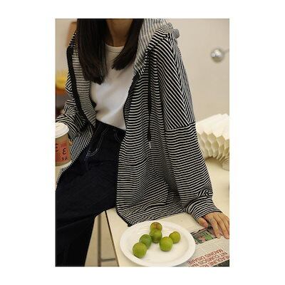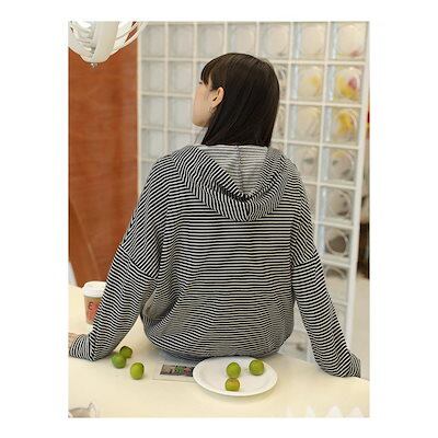 パーカー レディース トップス 長袖 薄手 ボーダー カット フード付き 紫外線 春秋 大きいサイズ 体型カバー 着痩せ