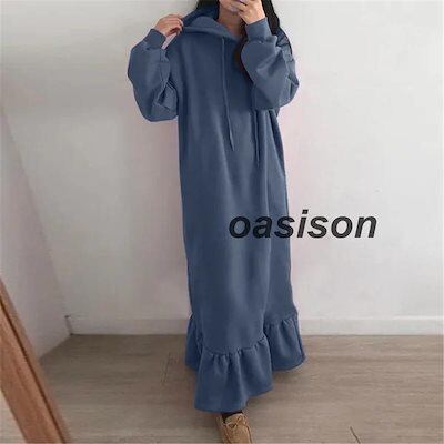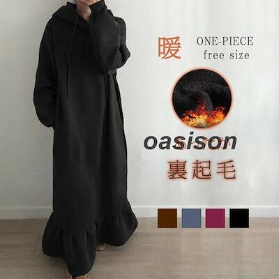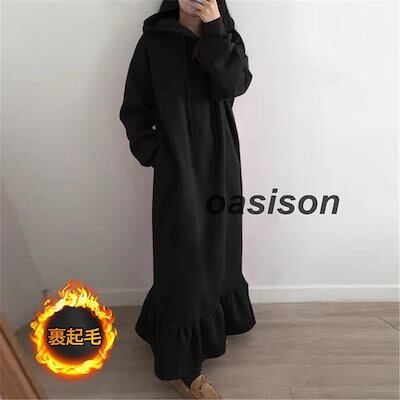 人気商品超目玉 裏起毛 ワンピース ボリューム袖 パーカーワンピース レディース 秋冬 長袖 暖かい 極暖 あったか ビッグシルエット ゆったり ロング丈 綿混
