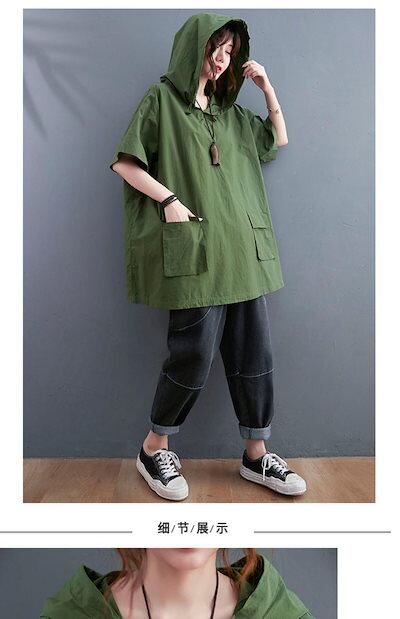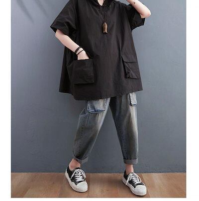 「ファットガール」 2024夏 パーカー 半袖 トレナー フード付き 無地 ポケット スウェット 体型カバー 大きいサイズ ゆったり レディース