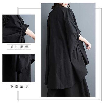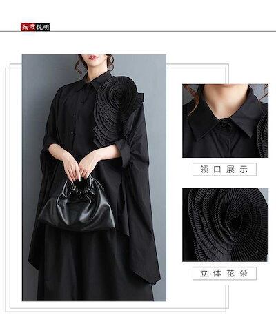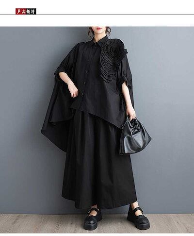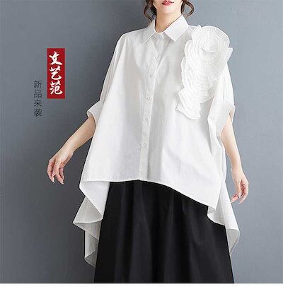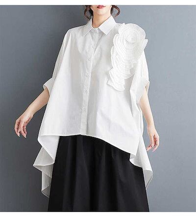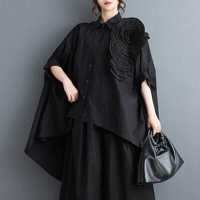 「ファットガール」 2024夏 花飾り ブラウス 前短後長 コサージュ 無地 半袖 体型カバー チュニック ロングブラウス ロンT 大きいサイズ ゆったり レディース シフォンブラウス 母の日 メガ割