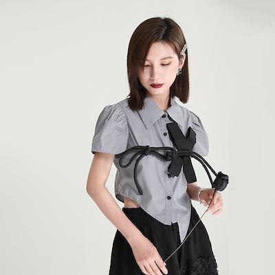 【J.Fashion】 短丈 ブラウス 可愛いデザイン フリル袖 不規則 レディース おしゃれ Tシャツ 半袖 花柄 シャツ レディース 日焼け止め オフィス 韓国 メガ割