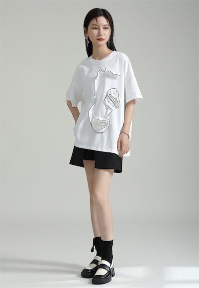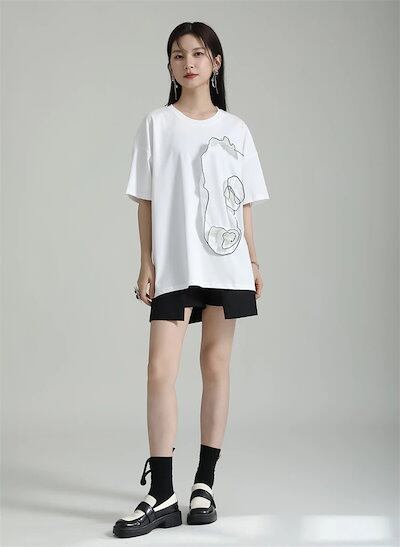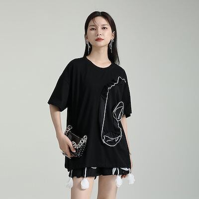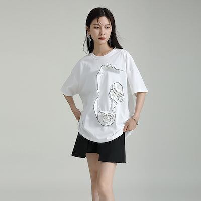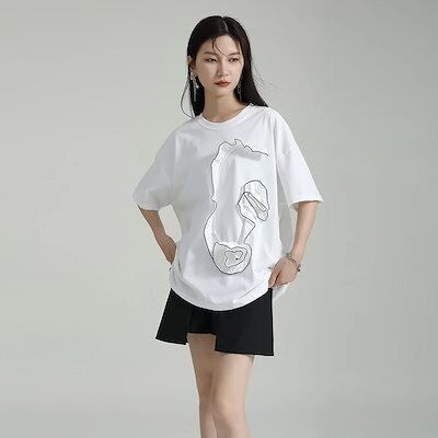 【J.Fashion】 半袖 花飾り Tシャツ レディース ブラウス レディース おしゃれ 上質 関連商品は店で購入可能 メガ割