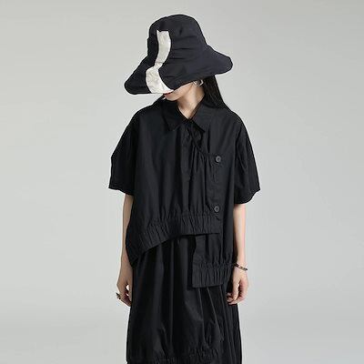 【J.Fashion】 ゴム裾 ブラウス 不規則 シワ風デザイン 夏 半袖 シャツ 皺 レディース おしゃれ 上質 関連商品は店で購入可能 メガ割