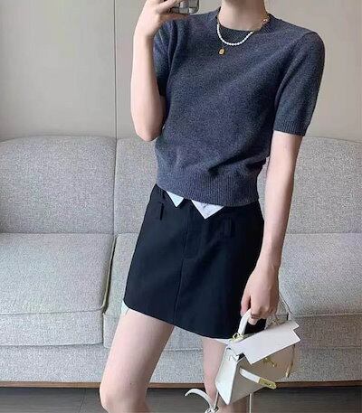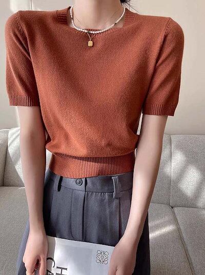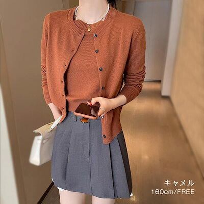ニットカーディガン カーディガン ニット アンサンブル レディース クルーネック ニットカーデ 半袖 長袖 ミドル丈トップス セット 半袖ニット 丸首 二の腕カバー おしゃれ きれいめ フェミニン 上
