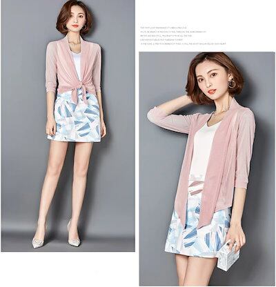 メール便(アパレル) レディース UV対策 トッパーカーディガン 無地 透け感 五分袖 ショート丈 ストレッチサマーニット シアー 前下がり UVカット 春夏 ボレロ 冷房対策 杢調 七分袖 カーデ