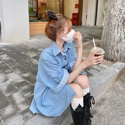怠惰風 ジャケット Tシャツ レディース レトロ セミロング 半袖 ゆったり 春夏 デニムカーディガン シアーシャツ