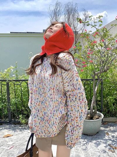 百掛け 長袖カシミヤタッチトップスベーシックニット 着痩せ 人気 韓国ファッション ゆったり 人気なリブニット レディース怠惰な風 ニットセーター レトロおしゃれセーター カラー