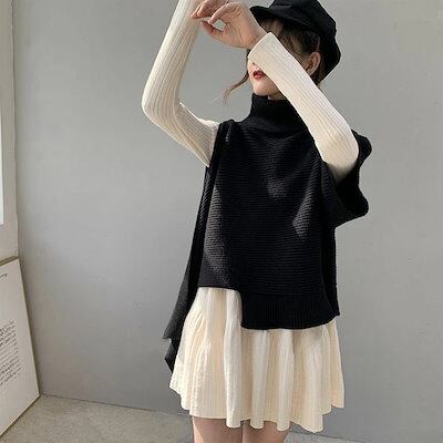 アシメニットベスト ベスト レディース ニット トップス ノースリーブ ハイネック アシンメトリー アシメ フレア セーター 重ね着 レイヤード モード とらみ 半袖 デザイン カジュアル おしゃれ