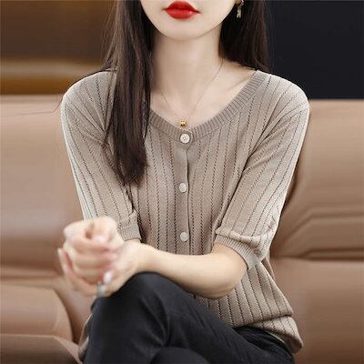カーディガン UVカット 接触冷感 レディース ラウンドネック 紫外線対策 薄手ニット カーディガン 冷房対策 日焼け防止 上着 半袖 おしゃれ ナチュラル 無地 トップス オフィス 通勤 春 夏 薄