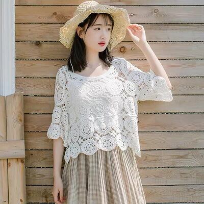 UVカット レース シャツ レディース 春夏 透かす ブラウス 半袖 トップス Tシャツ tシャツ 半袖 レディース 韓国ファッション