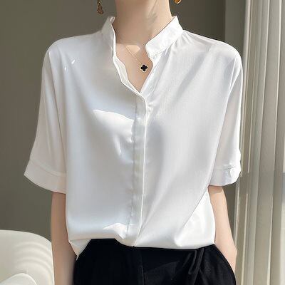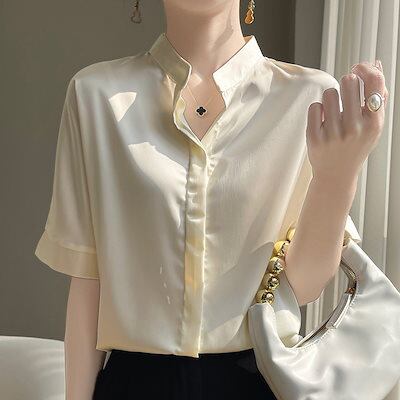 マウンテンパーカー シアーシャツ ブラウス カーディガンシフォンブラウス 【上品】サテンブラウス レディース 上品 大人 無地 通勤半袖 Tシャツ 韓国ファッションシンプル 高級感アイスシルク 20代