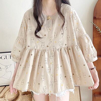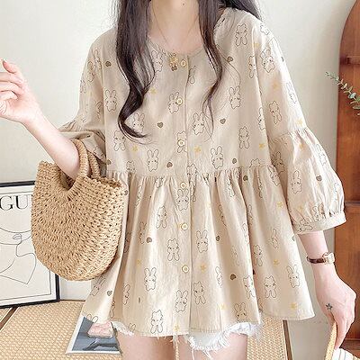 マウンテンパーカー シアーシャツ ブラウス カーディガンブラウス 半袖 着やせ 韓国風 小花 うさぎ 贅肉カバー トールネック Tシャツ 大きいサイズ ショート 半袖 tシャツ レディース トップス
